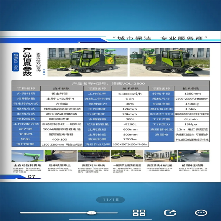 咨询热线:19558719166  电动扫地车 是以电能为动力的清洁设备,集吸尘、扫地、喷水及垃圾运输功能于一体,凭借 零排放、低噪音、高效作业 的特点,广泛应用于市政道路、工厂车间、物业小区及室内公共场所。该类设备采用电力驱动系统。